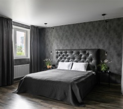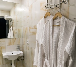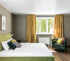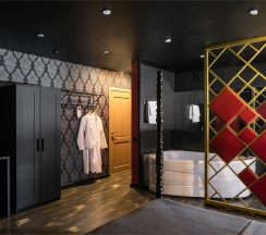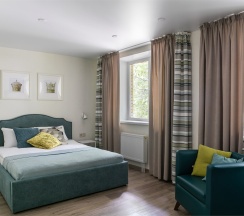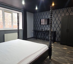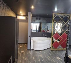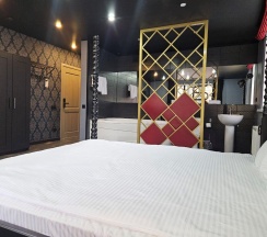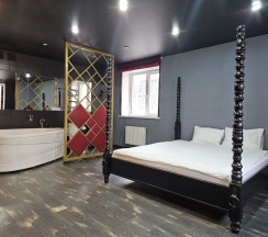 Особенный номер, для романтичных встреч. В номере двуспальная кровать, большая ванна, санузел. Номер без гостевой зоны и кухни. Насладитесь комфортом и уютом особенного номера.