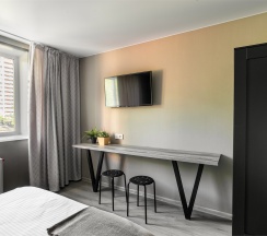 Останавливались на ночь. Отличный свежий ремонт, чистота, полотенца, тапочки, набор средств гигиены, комплект посуды, идеальное хрустящее постельное белье и удобные кровати, большое количество розеток, приветливый персонал, тихий район в шаговой доступности от супермаркетов, приятный ценник. Спасибо!