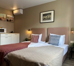 Наш комфортабельный номер идеально подходит для семейного отдыха и деловых поездок. Он включает в себя 2 спальные комнаты , мини кухню оснащенную всем необходимым для приготовления и приема пищи. В ванной комнате есть душевая кабина, что обеспечивает дополнительное удобство.