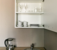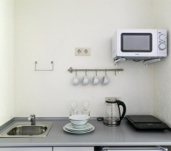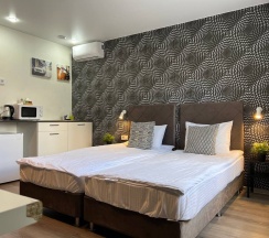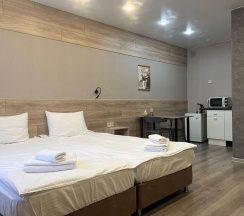 Комфортабельный номер для отдыха и работы. В номере две односпальные кровати, мини-кухня и вся необходимая посуда для приготовления пищи. Собственная ванная комната оборудована душевой кабиной, санузлом. Номер подходит для длительного проживания.