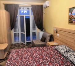 В номере: большая двуспальная кровать и раскладная кровать (по цене допместа), тумбочки, журнальный столик, шкаф, тв, холодильник, сплит-система, wi-fi, санузел. Первый этаж. Отдельный вход со двора в каждый номер. На территории : бассейн с подогревом, шезлонги под теневым навесом, зоны отдыха, теннисный стол, мангал, общая кухня.