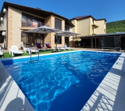 Небольшой уютный мини-отель. Есть всё необходимое для комфортного отдыха. Теплый бассейн, шезлонги, столики под навесом, мангальная зона. Удобное расположение. В пешей доступности с одной стороны пляж Сукко, с другой Кипарисовое озеро. А так же недалеко, в 5 минутах езды на авто Большой Утриш.