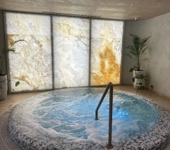 Нам отель понравился, были на осенних каникулах. Первое что хотелось бы отметить, это высокий уровень профессионализма всех сотрудников. Мы побывали во многих странах, но на столько улыбчивых и приветливых людей (при чем во всех сферах) встретили впервые. Приехали мы раньше времени и пришлось ждать, тут же подошла администратор и предложила скоротать время в спа. Время пролетело незаметно. У нас был номер люкс с балконом, очень компактный, но вместил в себя все необходимое. Единственное чего не хватило, зеркала в полный рост. Даже мини кухня со всем необходимым есть, включая духовку, посудомойку и стиральную машину. Единственное можно было б как-то в душевой кабине сделать лучше изоляцию, вода проливается на пол. Зато унитаз с крышкой беде, ощущение, что из до в не уезжал, те пленько. Завтраки на выбор, но не большой. Первое: пашот, скрембл, глазунья и омлет. Допинг: лосось, жареные шампиньоны или бекон. Десерт: йогурт с сезонными ягодами (у нас была клубника), домашний рикотта тоже с ягодами и кедровыми орешками, каша 4 злака и сырники. Напитки на выбор. По желанию игристое. Мы за пять дне не устали. Надеюсь понятно, что надо выбрать что-то одно из списка. Больше всех нам понравилась администратор Алена из спа. Великолепная девушка, все замечательные, но она просто фея. Встречает прекрасной улыбкой, добрыми словами, всегда красива и позитивна. В спа: джакузи, травяная баня, русская и хамам с бассейном, прохладительный напиток. Вечером лучше не ходить, не протолкнуться. Но к сожалению и в другое время не всегда приятно. Много было детей, занимали полностью все пространство. Была семья с мячом, ребенок зашел в соляную комнату и начал этот мяч пинать, родители вообще не проявили никакого интереса. Было б интересно посмотреть, чтоб они сказали, если он разнес бы эту мозаику, но сотрудник остановил. Подводя итог хочу сказать, отель достойный, новый. Сервис на высшем уровне