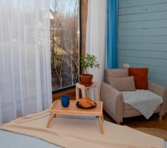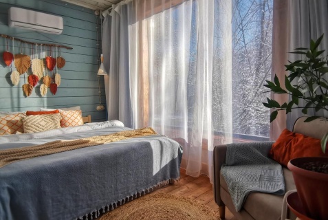 ?Уединение и полная приватность — никаких соседей, только вы, лес и звуки природы. Панорамные окна, каминная печь и белоснежный сатин постельного белья создадут атмосферу уюта и комфорта.