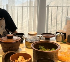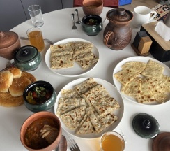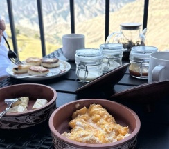 4. В отеле вкусное питание, которым вы можете насладиться на вашей террасе - лучшие сырники, кураговая каша и кутабы с сыром или бараниной)