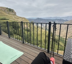 Так же, мы брали в аренду палочки для ходьбы и спортивный коврик . Успели забраться на соседние горы и позаниматься йогой на свежем воздухе 🏔️