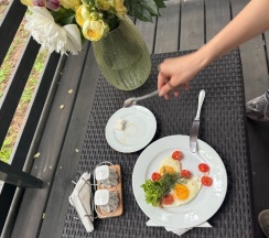 Отлично провели время в данном комплексе, свежий воздух, тишина. Поплавали в бассейне, сходили в хамам. Время плавания бронировать заранее. Прогулка до озера через лес заняла в одну сторону около 5 минут. Съездили до Ганиной ямы она находится в 10 минутах езды 😌 советую 🏡