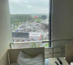 Удобно, что в пределах аэропорта. Заселила авиакомпания в связи с опозданием рейса м нестыковкой. Т.е. не пришлось еще ехать и ожидать пока кто-то сосватает трансфер и утром обратно. Номера небольшие, чисто аккуратно, но сколько в таком случае надо ? Помыться, отдохнуть вполне. Даже был включен завтрак и ужин, которые при заселении оговаривать надо и приносят в номер. Оценивать не буду, понятно в моей ситуации это "что дали...,и дареному коню не смотрят". Если прям голодны - уточните объем ужина и возможно дозакажите что-то платно. По мне порция на вид "очень от шефа, авторское", так, перекус. В целом очень удобно и близко. Не сразу далеко гостиницу нашел, но это не так сориентировали. Слышимость конечно да... Я крепко сплю и не жалуюсь, но прям три раза просыпался от шума выезжающих соседей и т.п. В номерах никаких чайников и холодильничков, нет даже питьевой воды. Но можно все купить у ресепшена