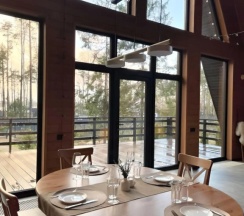 Посетили с семьей Grand A-frame. Отличное место для семейного отдыха. Дом оказался очень большим и просторным, при этом продумана каждая деталь. В кухонной части имеется все необходимо для приготовления, а также красивая посуда для сервировки. Отдельно хочу отметить свежие цветы на столе, это очень приятно и красиво! Обязательно примите ванную с панорамным окном на первом этаже, можно сделать очень красивые фото. Минусов нет, все было восхитительно! Белоснежное постельное белье и полотенца, говорят о том, что хозяйка с заботой относится к гостям. Вечером мы разожги костровую зону и приготовили мясо на мангале. Спасибо Вам за прекрасный отдых и будем возвращаться снова и снова, теперь это наше любимое место!