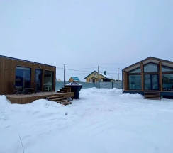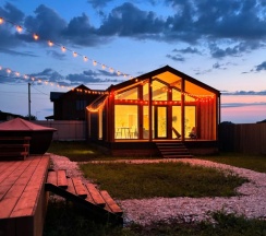 Частный дом «Барн-хаус с сауной и чаном» расположен в Казани, рядом с трассой М12. Аэропорта — в транспортной доступности.Гостям предоставляется дом площадью 70 кв. м с панорамными окнами и тёплыми полами. Внутри кухня-гостиная с раскладным диваном и спальня с двуспальной кроватью. В наличии телевизор, Wi‑Fi, кухонная техника и посуда, чай и кофе. Предоставляются постельные принадлежности, полотенца, халаты и средства гигиены. На участке площадью 7 соток — огороженная территория с зоной отдыха и парковкой. Дополнительно по запросу: панорамная сауна с душем и сибирский чан с запаркой из пихты или лепестков роз.