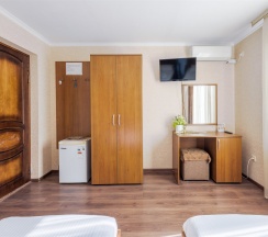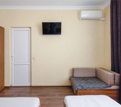 Чисто, уютно, гостеприимные хозяева. Жили семьей в 4-местном номере. Бронировали в апреле 2025 на июнь. Все очень понравилось. В номере есть телевизор, кондиционер, фен, холодильник. Есть общая кухня с чайником и плитой