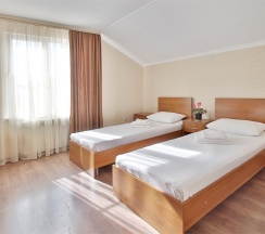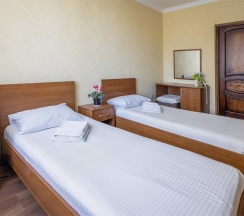 Уютный двухместный номер оснащен всем необходимым для комфортного проживания: удобные кровати, современный личный санузел находится напротив вашего номера и закрывается на ключ ,кондиционер, холодильник и бесплатный Wi-Fi. В номере также имеется рабочий стол, телевизор, фен, тапочки, халаты а также туалетные
