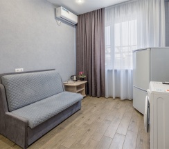Понравился мини отель. Порадовала кухня, на которой есть все необходимое. До моря пешком 20 минут, причем очень чистое в этом месте. Есть рядом столовая, пятёрочка. Стоянка самокатов. От жд вокзала дошла пешком. В общем осталась довольна своим пребыванием.