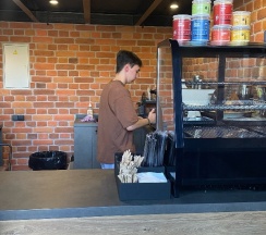 Отзыв только на кофейню. Пирожки вкусные. Кофе тоже вроде вкусный, но возвращаться не хочется, слишком грустное и унылое личико парня баристы, чувство что тебе здесь не рады, нет заинтересованности в работе, нет каких то стандартов обслуживания клиентов, поработайте над сервисом чтоли, отель ваш на уровне, значит посетители тоже, возможно с крупных городов, а они привыкли к лучшему..