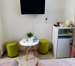 В номере есть полностью комплект посуды ,даже фужеры (удобно ,обычно ,я всегда за ними хожу )