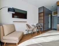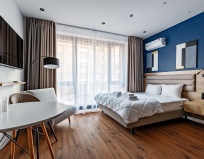 Номер просторный и светлый. Чисто, комфортно, много света, мебель и техника хорошие, есть все для проживания. Дистанционное заселение. Персонал внимательный, прислали всю информацию по проживанию. Интернет быстро работает. Расположение тоже прекрасное, рядом парк. Благодарю за комфортное пребывание!