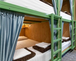 Современный интерьер. Чистота на высшем уровне, включая санузлы и душевые. Удивило, что возможна стирка, глажка, готовка на кухне, прием пищи тут же за столами, что для заведений такого формата - редкость. Самое главное - напротив термы. Рядом все необходимое - магазины, аптека, столовая, ресторан и.т.д. Отдохнул без проблем. Спасибо. Минус - к пледу не прилагается пододеяльник. Сомневаюсь, что их стирают после каждого посетителя