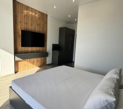 Апартаменты - прекрасная альтернатива размещения в отеле, ведь в вашем распоряжении оказывается полноценная двухкомнатная квартира в уединенном доме. В студии - полностью оборудованная кухня, стол, раскладной двуспальный диван с ортопедическим матрасом, в изолированной спальне - просторная кровать. В апартаментах есть всё необходимое для комфортного пребывания: постельное белье, полотенца, посуда, все кухонные принадлежности для приготовления еды. Стиральная машина, двухкамерный холодильник, электроплита, вытяжка, микроволновая печь, кондиционер, бойлер.