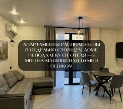 Апартаменты в аренду расположены в отдельно стоящем современном доме новой постройки неподалеку от отеля - 3 мин на машине или 10 минут пешком. Во дворе дома парковка и даже мангальная зона.