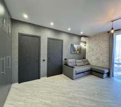 Апартаменты - прекрасная альтернатива размещения в отеле, ведь в вашем распоряжении оказывается полноценная трехкомнатная квартира в уединенном доме с собственной террасой- патио и мангальной зоной. В студии - полностью оборудованная кухня, стол, раскладной двуспальный диван с ортопедическим матрасом, в 2 изолированных спальнях - просторные кровати. В апартаментах есть всё необходимое для комфортного пребывания: постельное белье, полотенца, посуда, все кухонные принадлежности для приготовления еды. Стиральная машина, двухкамерный холодильник, электроплита, вытяжка, микроволновая печь, кондиционер, бойлер.