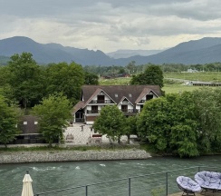 Отель хороший все очень вкусно,красивый вид на речку, тëплый бассейн. Приятный персонал.
