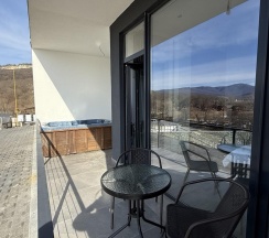 Двухместная комната комфорт с джакузи. Особенность комнаты - ваше приватное джакузи на террасе с панорамным видом на реку и горы.
