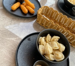 По приезду мы заказывали на обед пельмени и сырные палочки . Все было вкусно , правда .