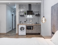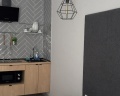 Апартаменты чистые, свежий ремонт, удобная большая кровать, есть горячая вода и wi-fi. Всё необходимое для проживания есть, но советуем добавить пару суповых тарелок.