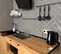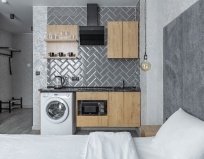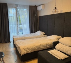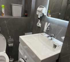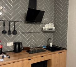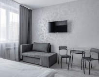 Администраторы приветливы, номер был чистый, новый. Всё продумано, удобно. В ванной комнате были гигиенические комплекты. Очень приятно спать на белоснежном новом белье. ТВ был с подпиской на кинопоиск, что скрасило вечер. О ремонтном шуме нас предупредили. Правда, уже после оплаты. Но для нас это не было проблемой, т.к в аппартаментах не находились днем. Однозначно рекомендую эту гостиницу.