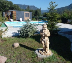 Обалденное место!!! Приехала с друзьями, которые уже были на этой базе пару месяцев назад, и не зря🥺Такого вайбового места, я ещё не видела. Горы вокруг, вечером прохладно, грелись в теплом бассейне, только попросили тапочки и халаты, нам тут же все принесли) жарили рыбу на костре, друг играл на гитаре,зазнакомились с соседями) очень круто здесь) администратор, тётя Ира, не женщина, а мечта) утром напоила нас ещё и вкусным капучино, уговаривала попариться в баньке, но днем жарковато, и мы отказались, но она посоветовала речку рядом, там безумно красиво, и в такую жару, это просто отдушина! Теперь собираемся с друзьями приехать на зимние праздники, если ещё будут свободные домики, баньку то так и не опробовали)