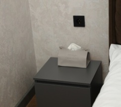 Номер чистый ,постельное новое! Чай/кофе,все мыльно-рыльные в наличии.Очень твердый матрас и крошечные подушки.Нет коврика в душевой и очень скользкий поддон,тв ничего кроме 2 каналов не ловит(странно выключается сам каждые 5 минут).В целом 8 из 10
