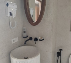 9 дней в начале июля проживали в этом отеле. Бронировали номер "улучшенный стандарт", но, судя по всему, нас поселили в "семейный". Почти всё понравилось! Небольшой, уютный, новый и стильный отель. Номер красивый, комфортный, в нём 2 отдельных комнаты с широкими двуспальными кроватями. Имеется всё необходимое, что указано на сайте отеля. Питание - завтрак по выбору с вечера. Можно заказать одно блюдо и один напиток. Шведского стола нет и это не совсем удобно, когда у некоторых гостей запреты на многие продукты, т.е. спецпитание. Сотрудники отеля были столь любезны, что пошли мне навстречу и предложили дополнительно ещё еды, т.к. я не наедалась. Правда это было первые два дня, а потом нам намекнули, что дополнительная еда за доп. плату. Поэтому было проще самим покупать некоторые продукты в ближайших магазинах и фрукты-ягоды по пути на экскурсиях. А вообще, сотрудники были очень доброжелательны, общительны и каждый вечер интересовались, как мы провели время и наши впечатления. Если приходилось рано утром выезжать на экскурсии из отеля до завтрака, то с вечера нам выдавали сытную еду в ланчбоксах. Заодно напишу и то, что к отелю не относится. Понравилось, что где бы нас ни кормили, везде было вкусно, сытно, хорошие порции и гораздо дешевле, чем, например, в других регионах России. Заходили почти в любое кафе или обычную столовую, и были приятно удивлены ценами, вкусными разнообразными блюдами, хорошим мясом, овощами и прочим. Вот только далеко не во всех городах Дагестана можно плавать, тк давно вывели канализационные стоки прямо в море! Это настоящее бедствие!! В первый день решили хотя бы просто прогуляться на ближайшем к отелю пляже, который примерно в 1,5 км. Но быстро оттуда ушли - жуткий канализационный запах и знаки, что купание запрещено. Пришлось ездить на такси примерно за 8 км от отеля, где нет этих стоков и нормальный пляж, и в Избербаш - на пляж и термальный источник. В целом поездкой остались довольны. Большая благодарность всем сотрудникам отеля!