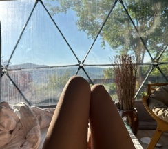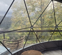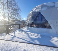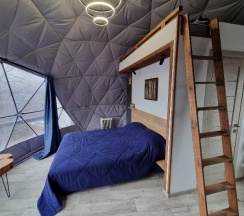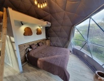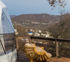 Дорога комфортная, вид открывается невероятный, все необходимое есть, можно сделать вкусняшки на гриле и покататься на качелях, даже есть стиральная машинка, это большой плюс, т.к. не везде есть. Сфера сама по-себе ламповая, употаешь от удовольствия в кровате и любуешься видом, есть теплый пол, чтоб продумано в этом плане, есть баня и бассейн. Найдется занятие как для взрослых, так и для детей☺️