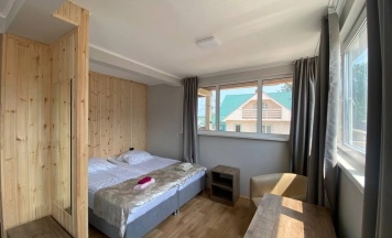В первую очередь хотим отметить вежливый персонал, отличного администратора Александра, большую благоустроенную территорию турбазы с парковкой, с детской и спортивной площадками, мангальной зоной, кафе, баней, различными беседками и т.д.