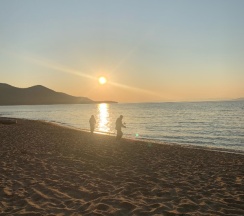 Ну а мы всей нашей компанией заказали на турбазе романтический ужин прямо на берегу Байкала, нам все прекрасно организовали, и мы были впечатлены красивым закатом Солнца, а также погрелись в баньке на воде.