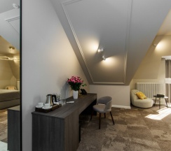 Номер категории люкс, с собственной гардеробной комнатой на 3 этаже. В ванной комнате душевая кабина и ванная. Максимальный комфорт и камерность.