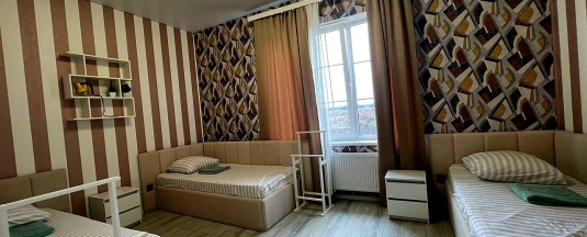 Койко-место в трёх местном номере с современным ремонтом,с общим душем. В вашем пользовании гостиная и кухня, есть вся необходимая бытовая техника (стиральная машинка, холодильник,плита). Особым преимуществом является наличие большой террасы, выход на которую осуществляется из гостиной.