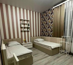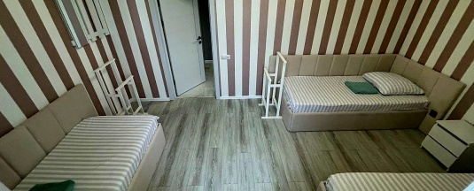 4-х местный номер с современным оемнтом.В вашем пользовании гостиная и кухня, есть вся необходимая бытовая техника (стиральная машинка, холодильник,плита).Удобства на этаже. Особым преимуществом является наличие большой террасы, выход на которую осуществляется из гостиной.