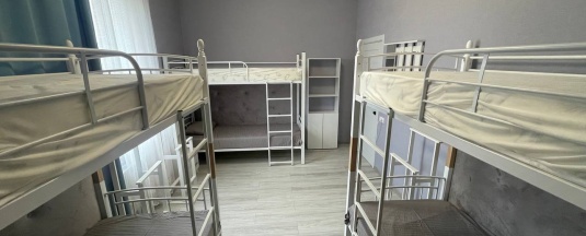 Койко-место в четырёхместном номере с современным ремонтом,с общим душем. В вашем пользовании гостиная и кухня, есть вся необходимая бытовая техника (стиральная машинка, холодильник,плита). Особым преимуществом является наличие большой террасы, выход на которую осуществляется из гостиной.