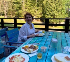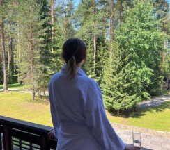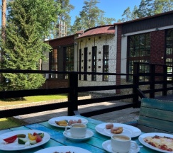 Мы (семья с двумя детьми) на этих выходных отдыхали в домиках отеля «Вереск» на озере Большое Симагинское. Очень хотелось перезагрузки и релакса. От СПБ ехать час (это рядом с Зеленогорском) У Вереска огромная территория на берегу озера в сосновом лесу, везде растет черника, песчаные пляжи. Домики совсем свежие (их только в прошлом сезоне построили), светлые, шикарная терраса с лежаками и диванчиками, есть спальня и столовая с двухспальным диваном, есть сауна и кухонный уголок. Кондея нет, но не душно ночью, ветерок. Есть сетки от комаров. Мы купались в озере (правда, по выходным народу немало), ужинали в ресторане Вереск (там много рыбных блюд), плавали в бассейне (совет – идите в утренний сеанс с 10 до 12 и тогда будете в бассейне одни). Бассейн глубокий, есть струи, сауны, прозрачная крыша и панорамные окна на сосны. Для нас было важно, чтобы понравилось детям: есть детский клуб с анимацией по расписанию, старшую записали на тренировку по теннису. (Кстати, у Вереска есть свой спортивный кэмп «Лесной олень» для детей в лесу, теннис и так далее). Мы с мужем сходили на массаж в спа, я попросила расслабляющий масляный массаж, муж – более чувствительный оздоравливающий.