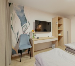 Название «Классика» выбрано не случайно: номер сочетает традиции гостеприимства и комфорт twin-размещения. Просторные две кровати увеличенного размера делают отдых особенно удобным для семьи, друзей или коллег.