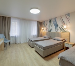 "Три сестры" - уютный номер в отеле. Название напоминает о чеховской классике, где семейные ценности всегда на первом месте. Этот трёхместный номер станет идеальным выбором для любителей отелей для семей с детьми, поездки с близкими или друзьями. Вас ждут smart TV, Wi-Fi, кондиционер, чайная станция с бесплатными напитками, ортопедические кровати с премиальным постельным бельём. Благодаря быстрому заселению и современным сервисам на этаже ваш отдых будет по-настоящему комфортным.