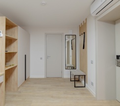 Интерьер дополнен деловой зоной, сейфом, шкафом для хранения и умным голосовым помощником Алисой. Система мастер-ключа и быстрое заселение обеспечивают удобство и безопасность в любое время суток. «Классика» сочетает классический комфорт и технологичность, обеспечивая полноценный отдых.