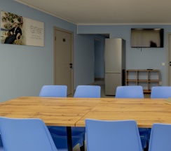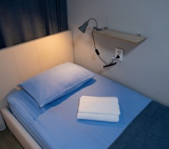 совсем новый отель (мы – вторые посетители), очень чистый и аккуратный. номера на 1, 2 или 3 человек объединены по "квартирному типу", то есть у них есть общие залы, кухня, ванные комнаты, стиральные машины, гладильные доски – идеально для групп и компаний, так как очень удобно проводить время вместе. на первом этаже есть кофейный автомат и кулер с водой (горячей, тёплой и холодной).