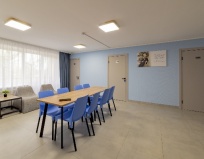 совсем новый отель (мы – вторые посетители), очень чистый и аккуратный. номера на 1, 2 или 3 человек объединены по "квартирному типу", то есть у них есть общие залы, кухня, ванные комнаты, стиральные машины, гладильные доски – идеально для групп и компаний, так как очень удобно проводить время вместе. на первом этаже есть кофейный автомат и кулер с водой (горячей, тёплой и холодной).