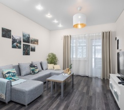 В Вашем распоряжении 2 спальни, просторная гостиная с зоной кухни, где можно приготовить блюда самостоятельно.