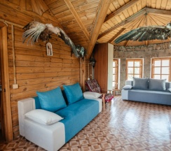 Двухэтажный просторный дом с баней на дровах. В доме на первом этаже расположена столовая, баня и санузел. На втором этаже две спальные комнаты с общим холлом и балконом. В доме всего четыре односпальные кровати и два двуспальных раскладных дивана. В каждой комнате сплит-система. Дом оснащен холодильником, телевизором, чайником. В стоимость суток входит 2 часа бани. Идеально подходит для большой семьи.
