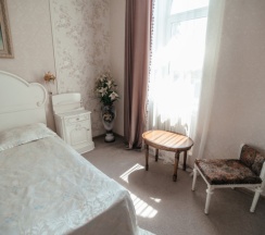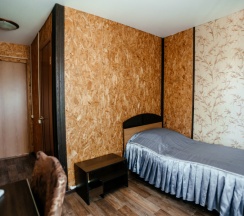 Одноместный номер с одной полутороспальной кроватью. В номере индивидуальный санузел, сплит-система. Номер оснащен холодильником, телевизором, чайником. Идеальное размещение для пары.
