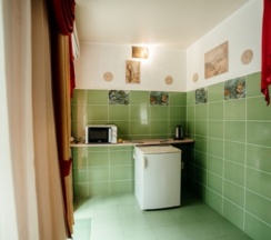 В номере три полутороспальные кровати, один раскладной полутороспальный диван. Санузел в номере, чайник, микроволновая печь, мини-холодильник