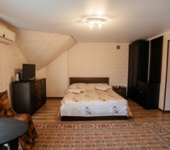 Двухместный двухкомнатный номер с двуспальной кроватью и лаундж-зоной . В номере индивидуальный санузел, сплит-система, джакузи. Номер оснащен холодильником, телевизором, чайником. Имеется свой дворик. Идеально подходит для пары.
